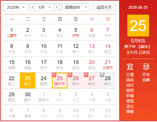 2020年端午節放假通知
